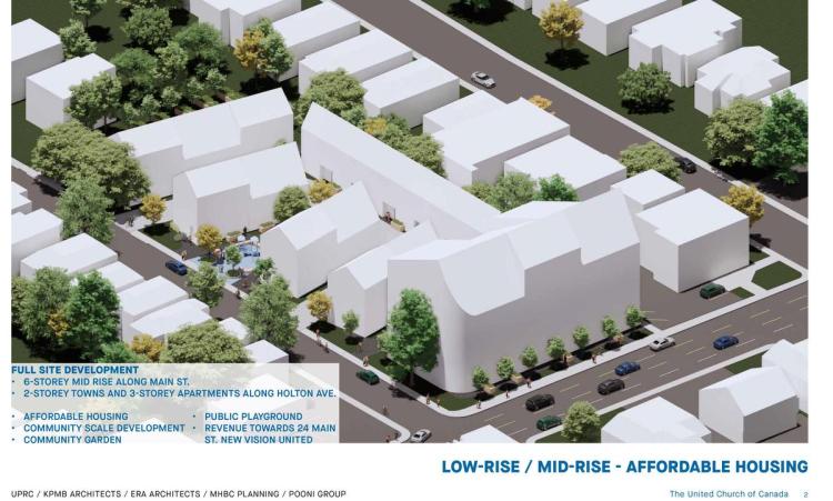 In June, the owners held a long-awaited info webinar, overseen by a Vancouver PR firm. There, demolition was still presented as their preferred option. The owners now refer to the property as 85 Holton, or “the Holton campus,” and take exception to using its name — even though the building is older than the United Church.